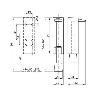 Mechanická dveřní zarážka s gumovým dorazom pre zaistenie dverí v otvorenej polohe. Montáž na spodnú časť dverí. Vyhotovenie pre ťažké dvere.