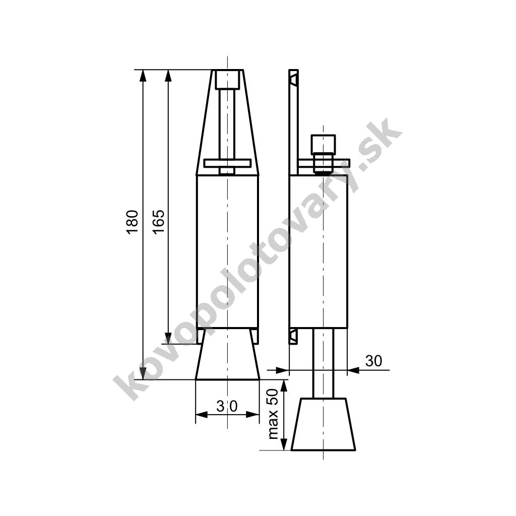 Mechanická dveřní zarážka s gumovým dorazom pre zaistenie dverí v otvorenej polohe. Montáž na spodnú časť dverí.
