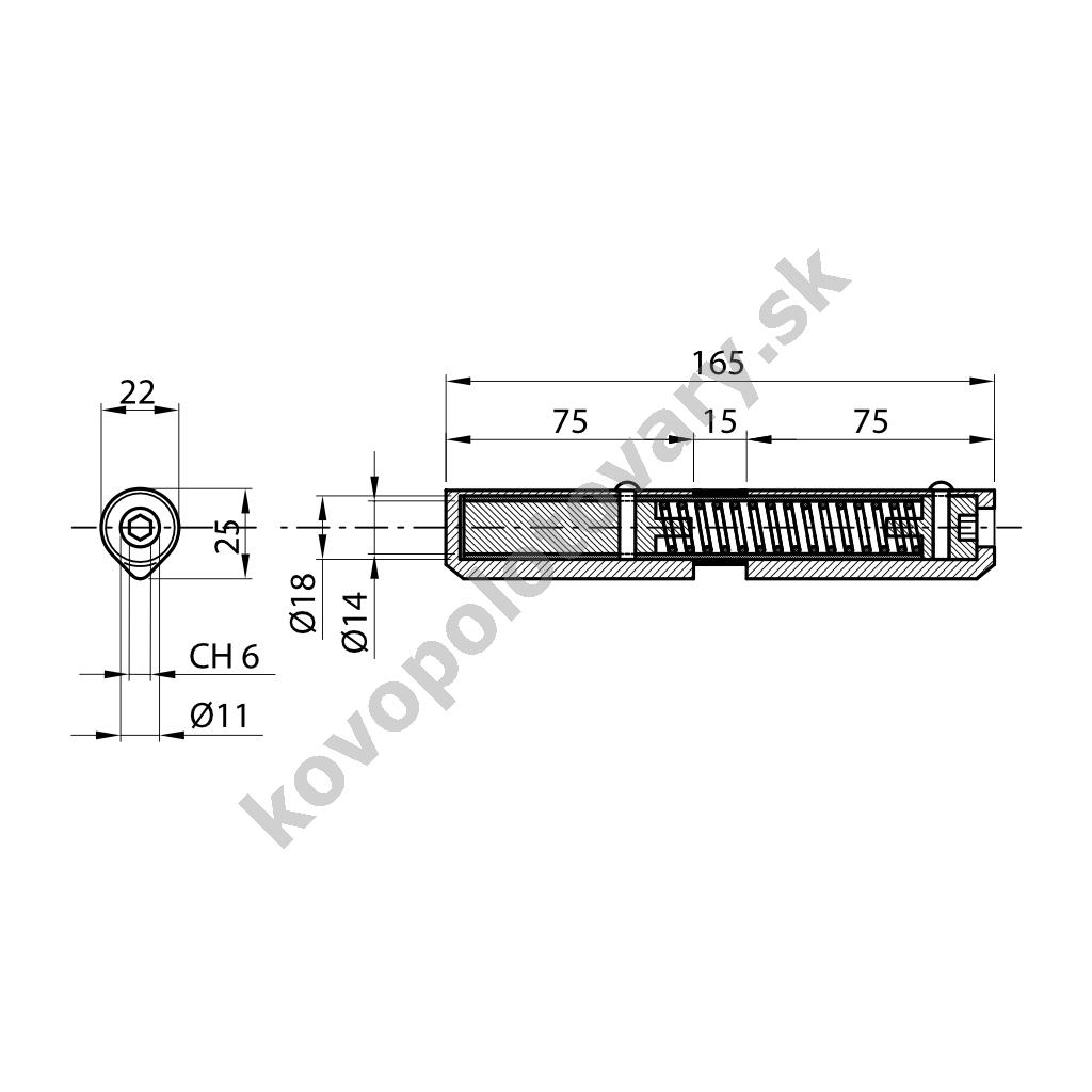 IBFM 415M - navarovací pánt s pružinovým zatváračom, pr. 22 mm x 165 mm, pre dvere a vráta