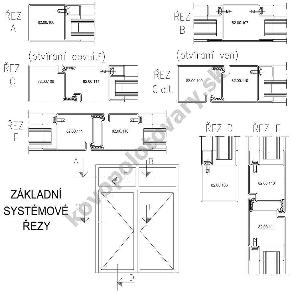 Jedná sa o základné profily pre jedno-a dvojkrídlové dvere a pevné okná. Hĺbka profilov je 50 mm tzn. je možné bezproblémové osadenie izolačného dvojskla alebo panelu. Profily sú plošne spojité tzn. celá konštrukcia je v jednej rovine a krídlo neprekrýva rám.