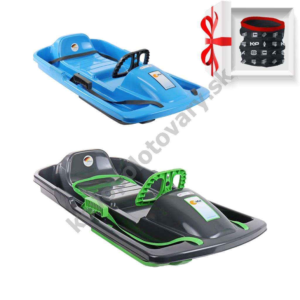 KHW Snow Fox Xmas set AB - 2x dětské boby s volantem a ruční brzdou, antracit/modré + dárek KP šátek