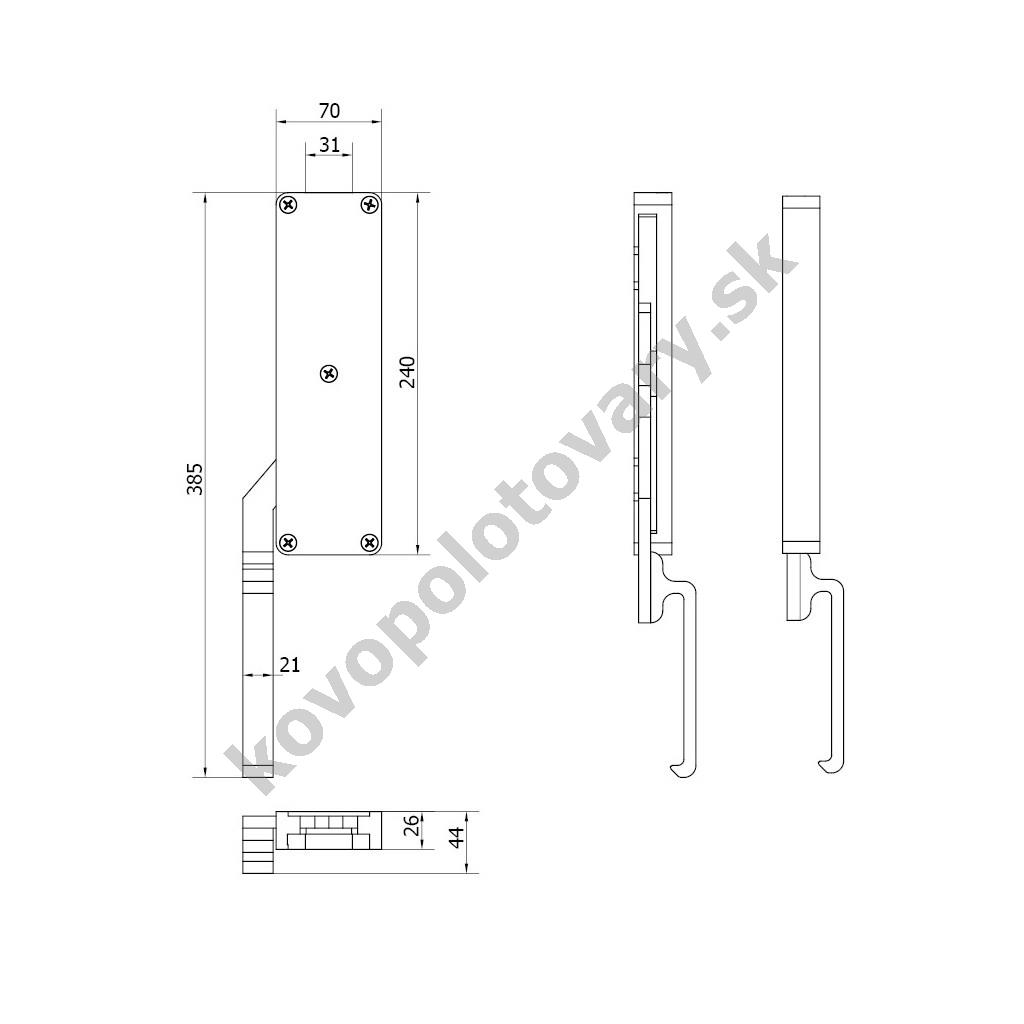 KL-70-L - Vertikálna kľučka, ľavá Určené pre ťažké závesné posuvné brány a vráta. Na použitie s tiahlom / zatváracie...