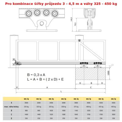Schéma stavebnej pripravenosti (údaje pre konštrukciu brány a rozmery pre betónovanie základu) je možno vidieť na doplňujúcim obrázku.
