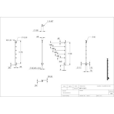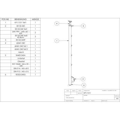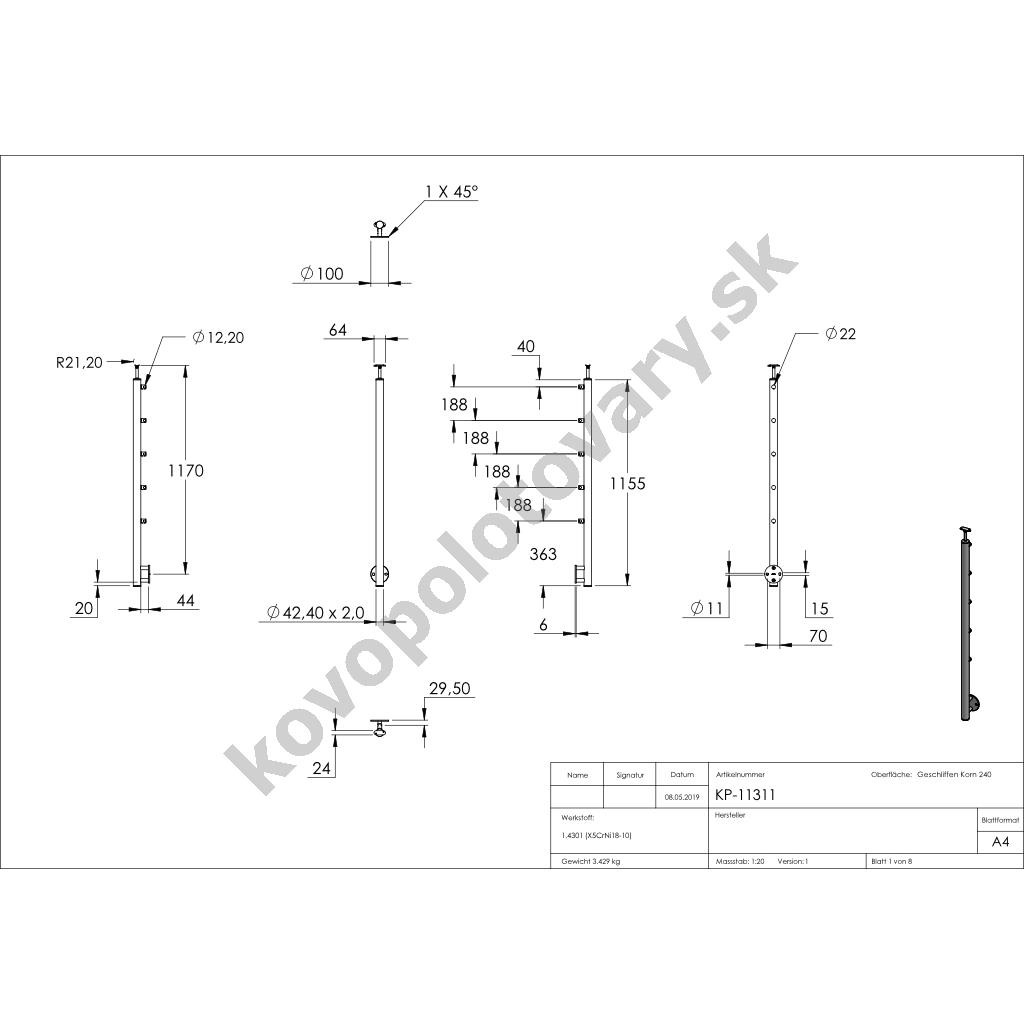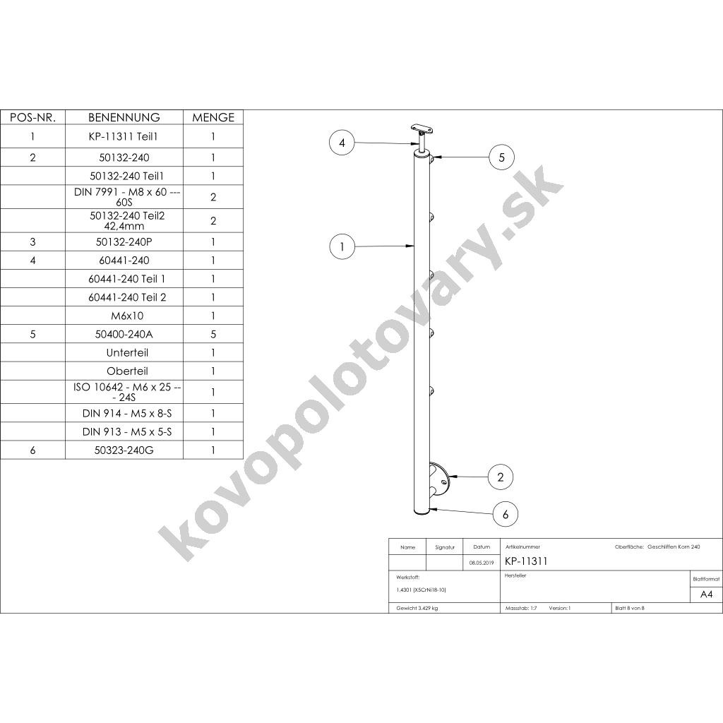 KP-11131 Stĺpik nerezového zábradlia pre prútovou výplň, skompletizovaný v hotový výrobok pripravený na montáž. Je určený pre zábradlie s maximálnym prepadom do 12 m (podľa platných noriem ČSN).