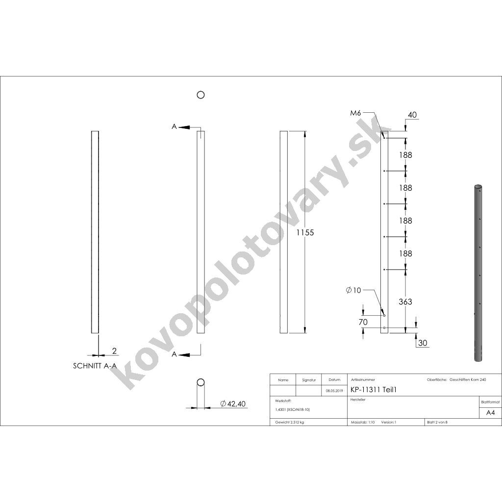 - 1x 55130-240 - nerezová rúrka, priemer 42,4 mm, hrúbka 2 mm