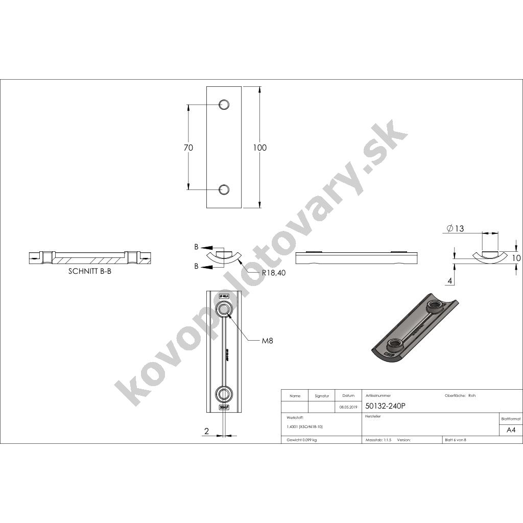 - 1x 50132-240 + 50132-240P - nerezová kotviaca príruba na stenu