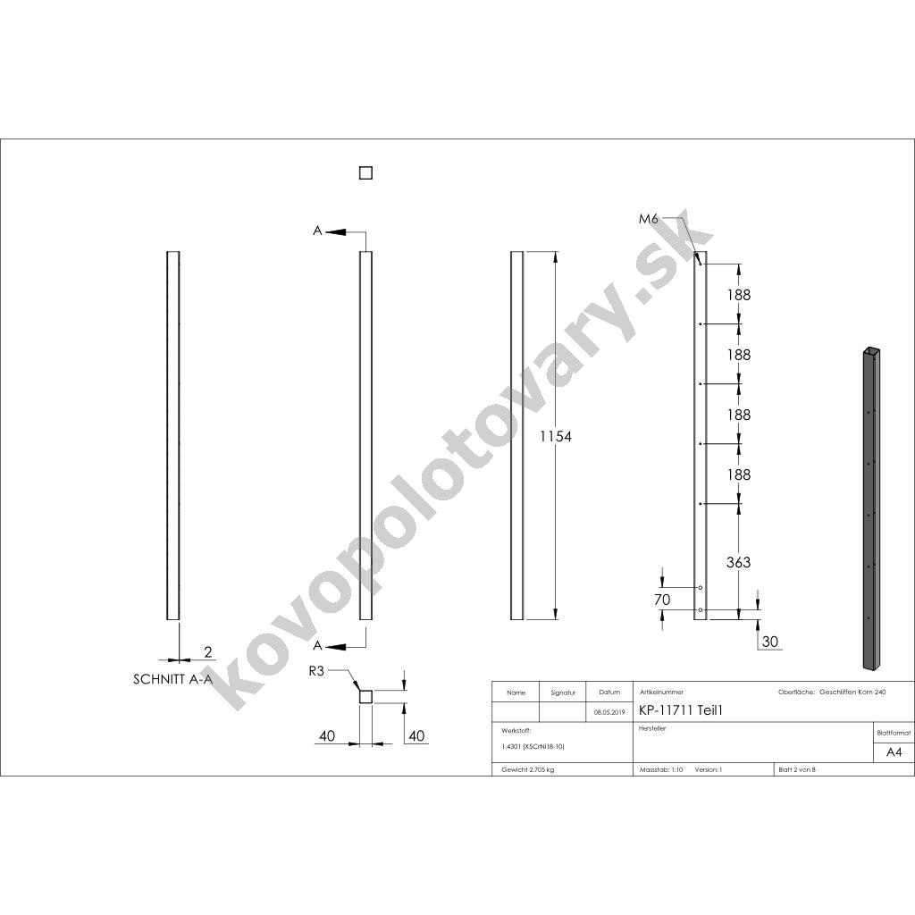 - 1x 55400-240 - nerezový jeklový profil, prierez 40x40 mm, hrúbka 2 mm
