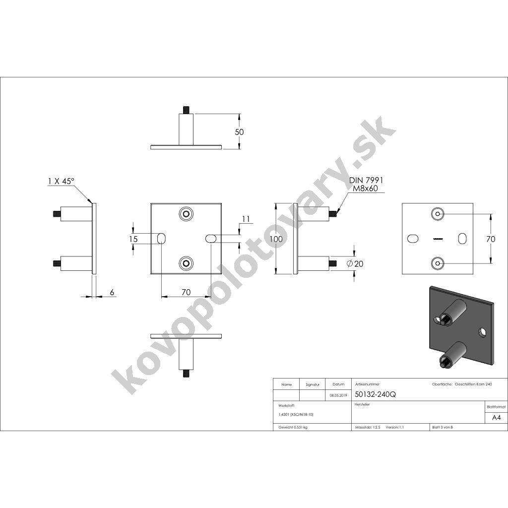- 1x 50132-240Q + 50132-240P - nerezová štvorcová kotviaca príruba na stenu