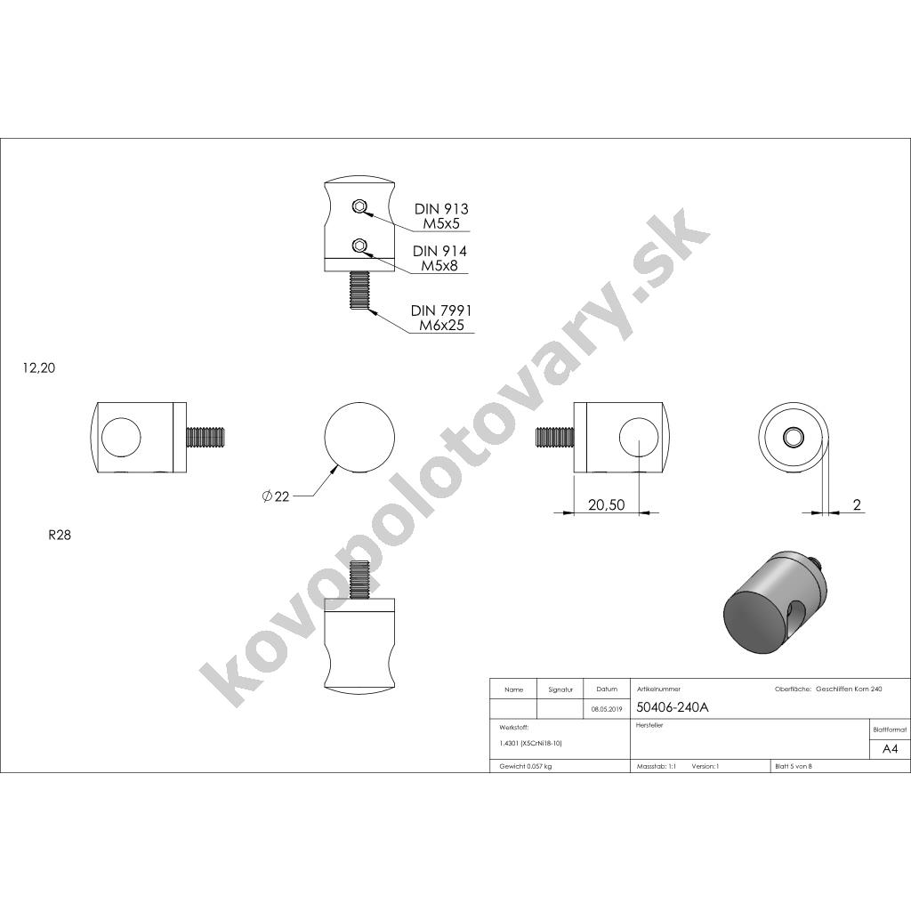 - 5x 50406-240A - nerezový okrúhly priebežný držiak prútovej výplne (pr. výplne 12 mm)