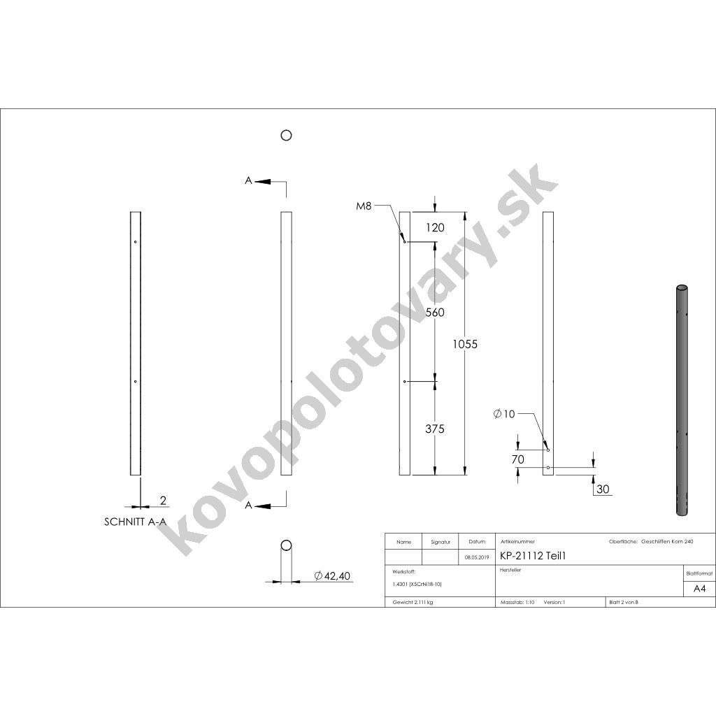 | Povrchová úprava | mat / brus K240 |