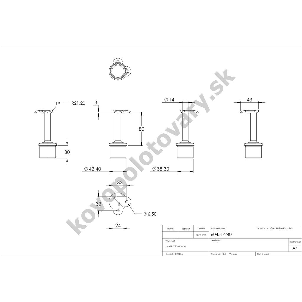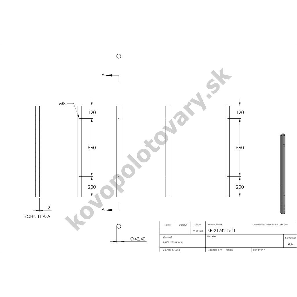 | Povrchová úprava | mat / brus K240 |