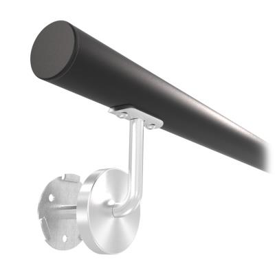KP-43111_300 - lakované zábradlie na stenu, nerezové madlo pr. 42,4 mm, čierne RAL9005, guľaté držiaky s krycou rozetou, dĺžka 300 cm Skladom 8 ks 113,07
