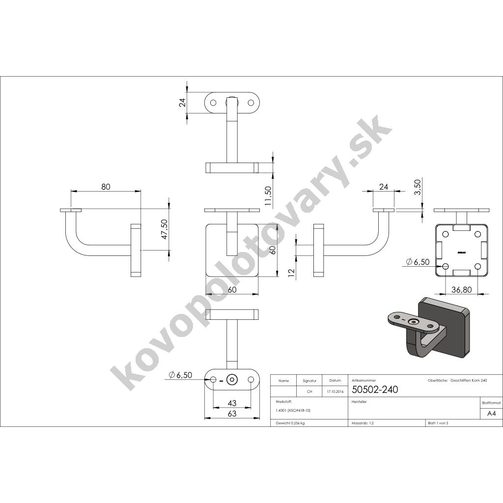 • 3x 50502-240 - nerezový hranatý držiak madlá s krycou rozetou pre uchytenie na stenu