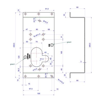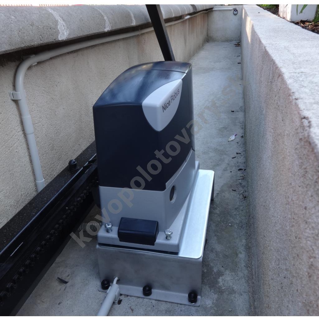 Podstavec pre montáž pod pohon posuvnej brány. Podstavec zdvihne pohon vyššie, aby pastorok pohonu dosiahol na ozubený vodiaci hrebeň namontovaný na samonosnej posuvnej bráne.