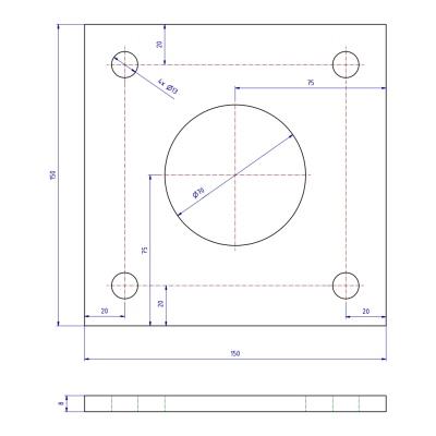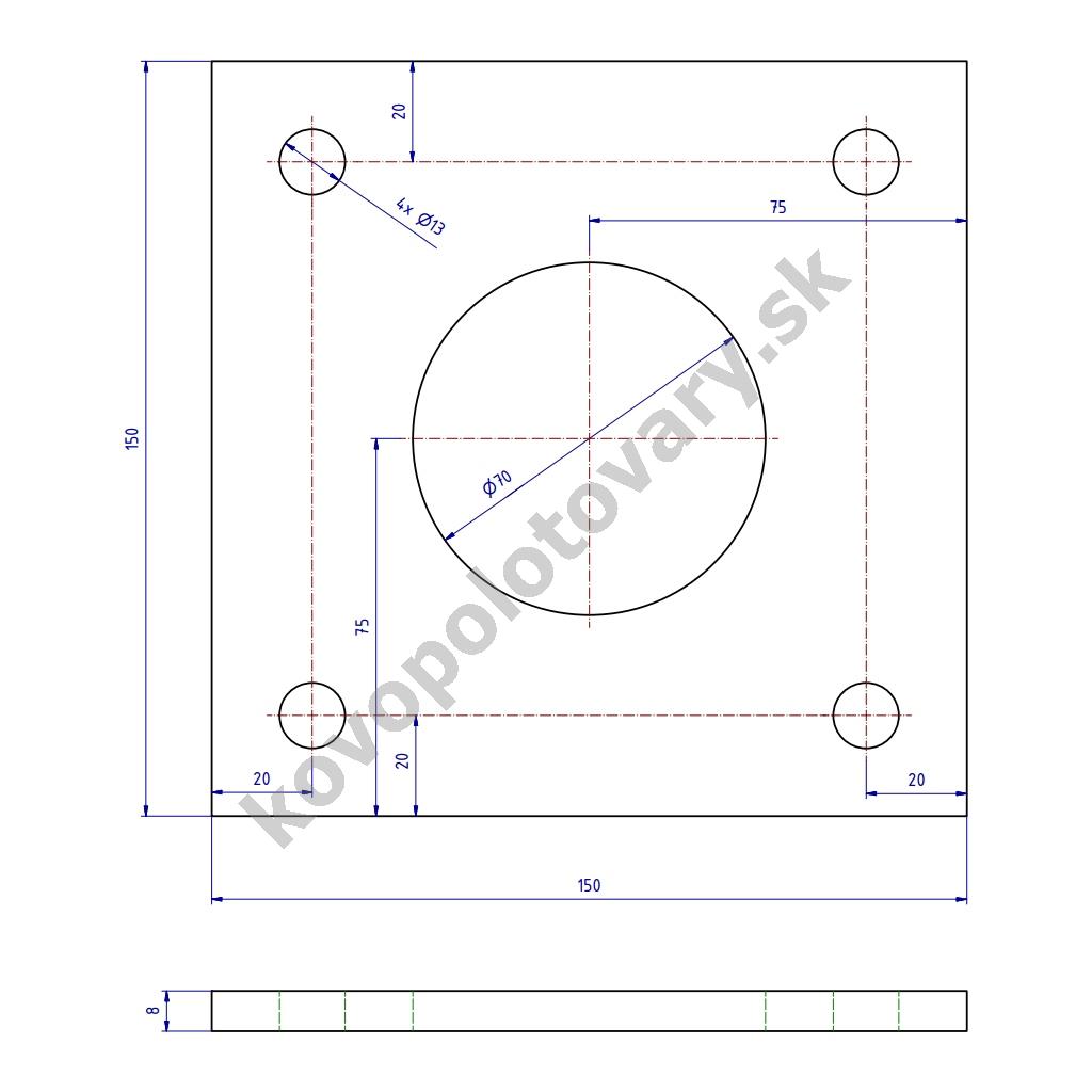 Materiál: ocel; Povrchová úprava: bez úpravy; Rozměr základny: 200 x 100; Rozměry otvoru: 70; Tloušťka: 8; Výrobce: KP;