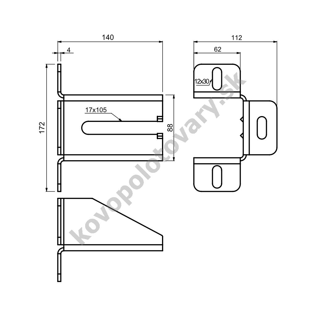 Kratšia 140 mm konzola KHL-140 pre držiak DC-70 vodiaceho C profilu, pozinkované, pre ťažké závesné posuvné brány a vráta