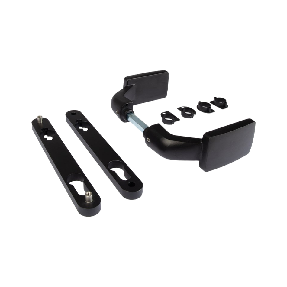 1x LOCINOX 3006FIX 9005 - hliníková dverová kľučka (1 pár) s plastovými krúžkami, štítkami, fixačnými doplnky a istiacou skrutkou, čierna