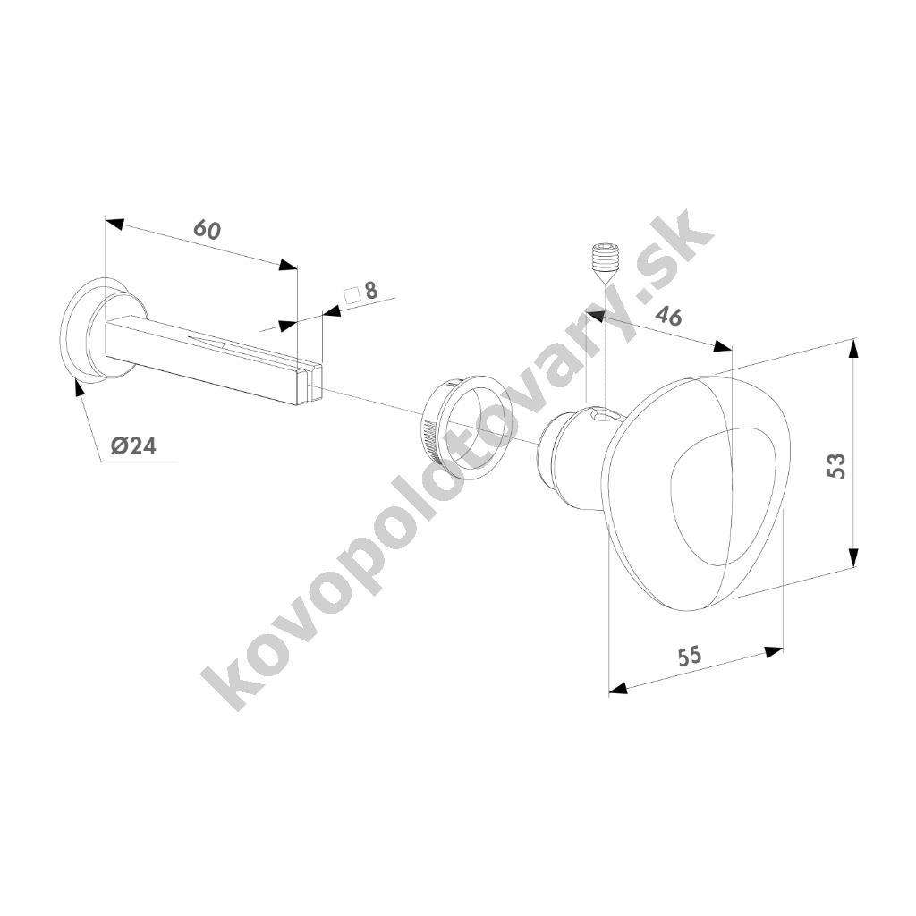 Délka: 55; Materiál: hliník; Povrchová úprava: eloxování; Výrobce: LOCINOX;