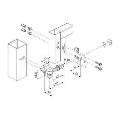 Regulovateľné pánty pre krídlové brány a bránky. Pre rýchlu montáž priskrutkovaním na oceľové stĺpiky, montážnou sadou Quick-Fix. Tento pánt umožňuje regulovať odsadenie krídla brány stranovým kľúčom. Pomocou tejto regulácie docielite súbežnosti krídiel aj v prípade vyosenie stĺpiku, napríklad vplyvom mrazu.