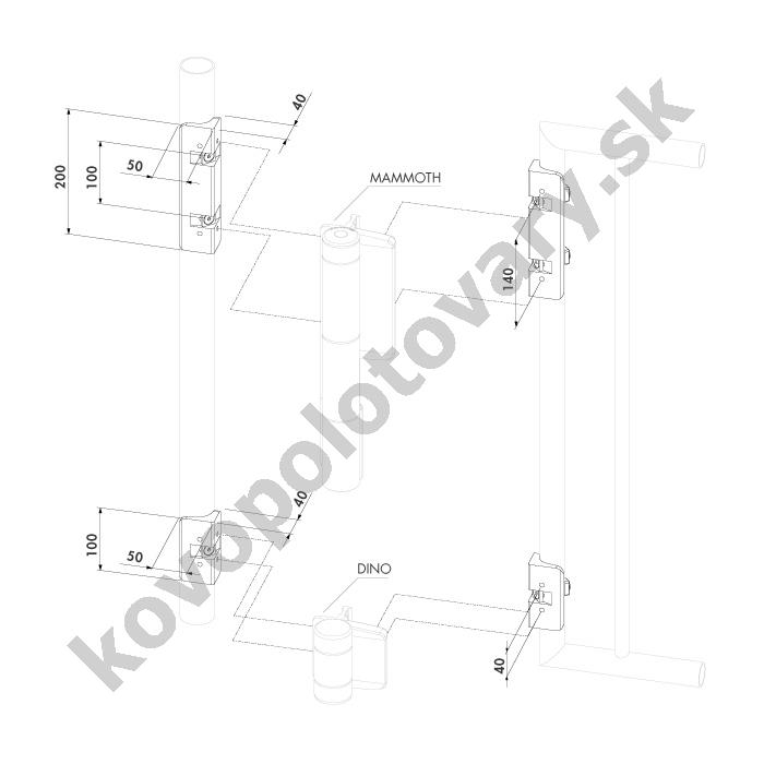 LOCINOX MAMMOTH - zatvárač nahrádzajúci pánty, pre krídlové bránky do 150 kg
