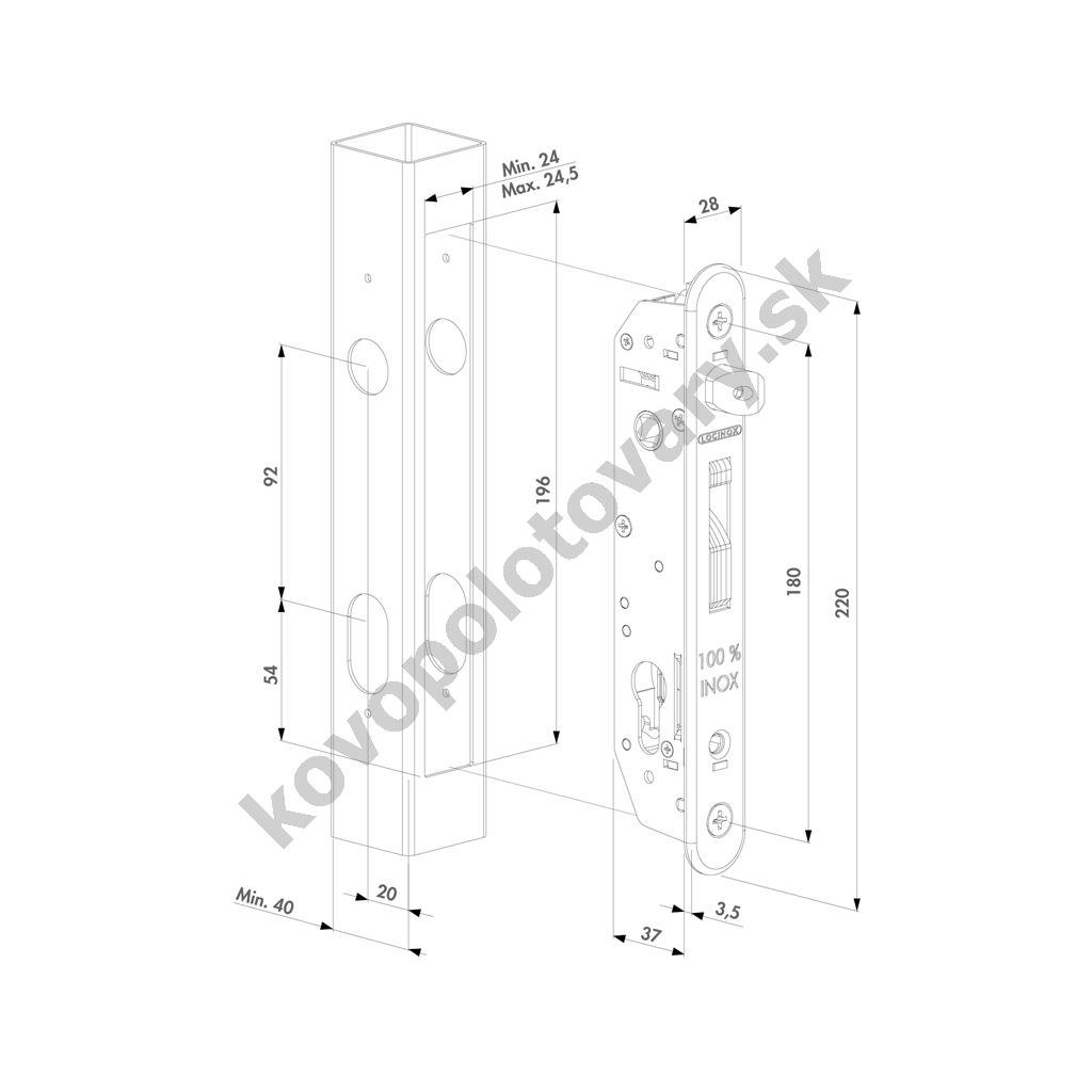 Materiál: hliník; ocel nerezová; Rozteč středů otvorů: 92; Výrobce: LOCINOX; Zádlab: 47;