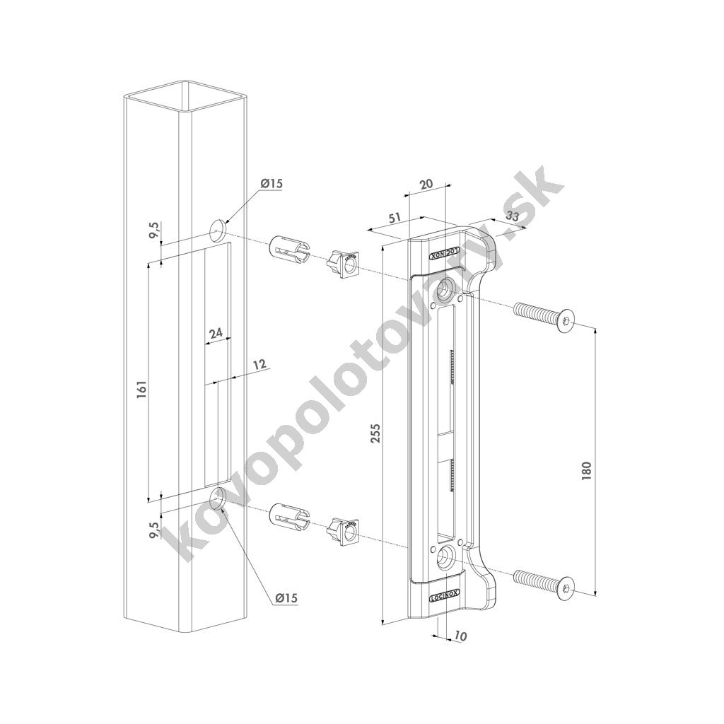 Materiál: hliník; ocel nerezová; Rozteč středů otvorů: 92; Výrobce: LOCINOX; Zádlab: 57;