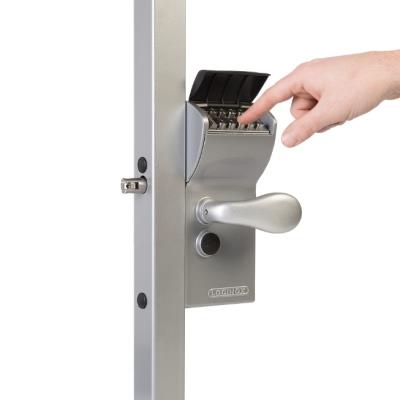 • Kódovaný zámok - na strane vstupu je kľučka zablokovaná. Odblokuje sa až potom, čo je na klávesnici zadaný nastavený 4-6miestny kód.