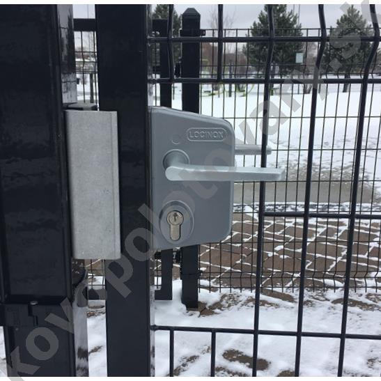 Komplet zámkovej krabice, zámku, kľučky a cylindrickej vložky pre krídlové bránky s šírkou jeklu 60 až 80 mm. Možno použiť pre ľavé aj pravé otváranie.