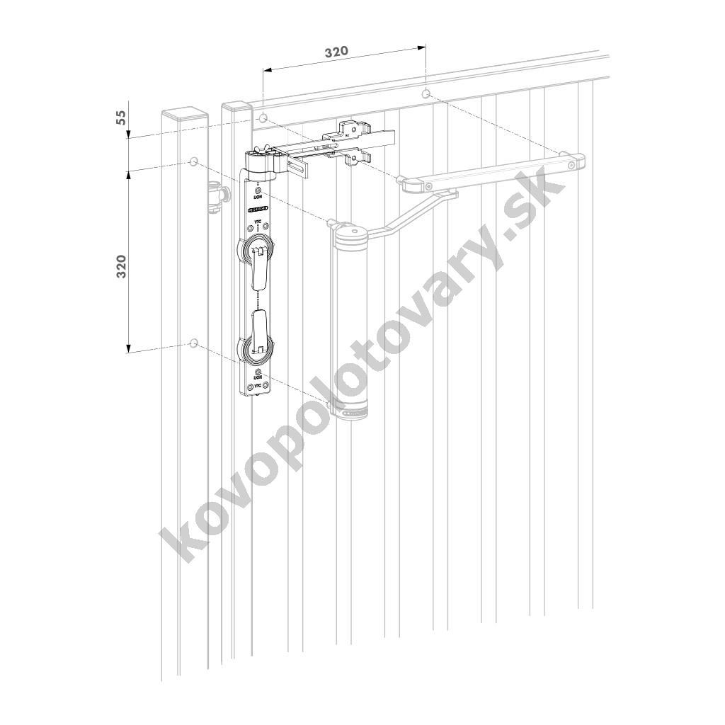 LOCINOX VERTICLOSE 2 - zatvárač s klznou lištou, pre krídlové bránky do 150 kg