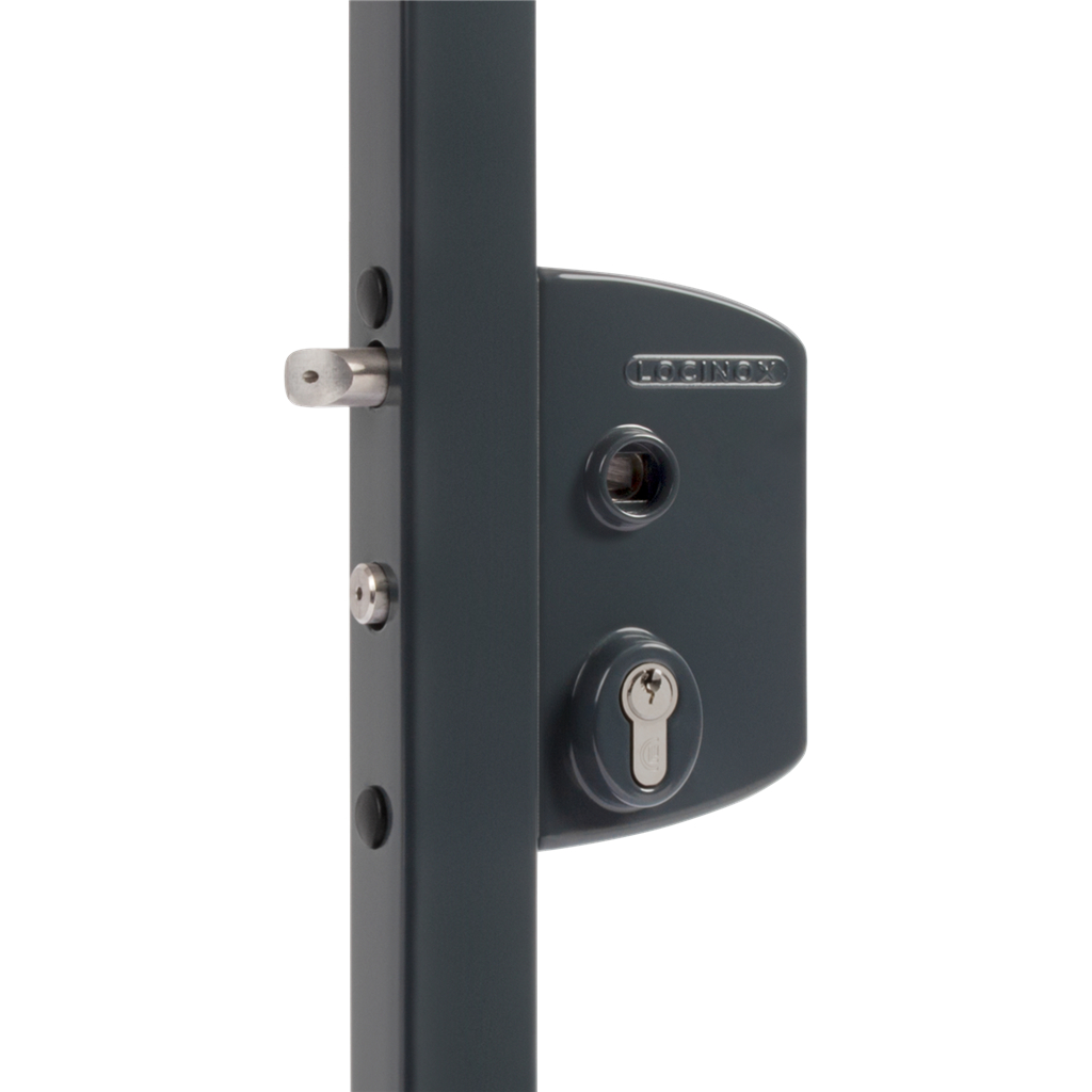 LOCINOX LPKQ 7016 - komplet zámkovej krabice s panikovým zámkom, pre profil 60 až 80 mm, pre krídlové bránky, antracit