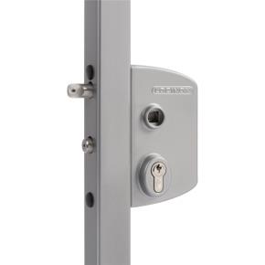 Komplet zámkovej krabice, panikového zámku a cylindrickej vložky, pre krídlové bránky s šírkou jeklu 40 až 60 mm. Možno použiť pre ľavé aj pravé otváranie.