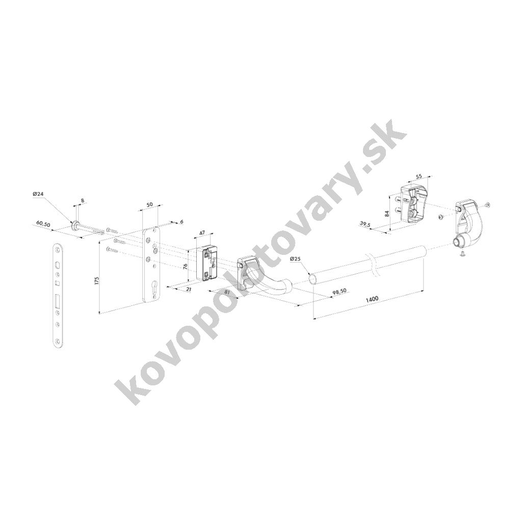 • 1x LOCINOX PUSHBAR-H-1400 - paniková hrazda pre zadlabávacie zámky LOCINOX, dĺžka 1400 mm