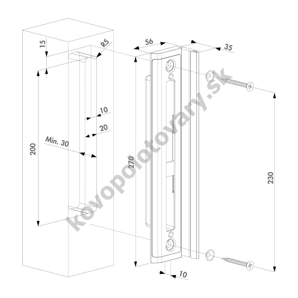 LOCINOX SHKW ALUM - dorazová lišta pre zadlabávací zámok H-WOOD, pre profil 40 až 60 mm, pre drevené krídlové bránky, strieborná Skladom 1 ks 19,13