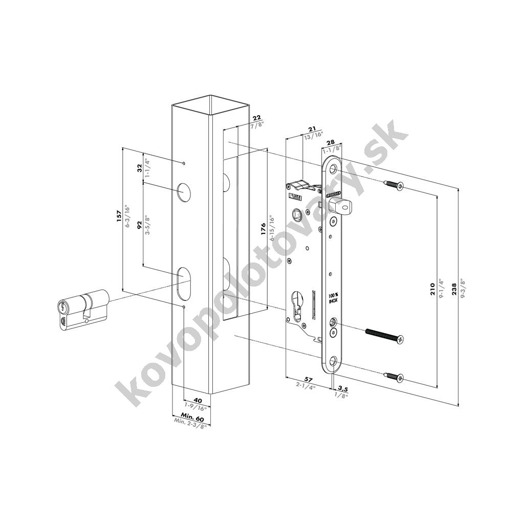 Délka: 98; Materiál: hliník; Povrchová úprava: eloxování; Výrobce: LOCINOX;