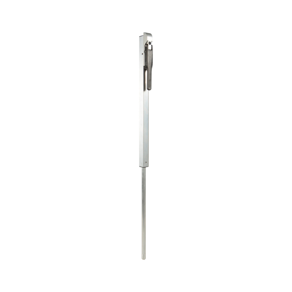 Mechanická zástrč pre krídlové brány a bránky, pre skrytú montáž. Slúži na zabezpečenie krídla brány do zeme v otvorenej či zatvorenej polohe.