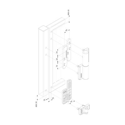 • 1x Kovová šablóna k príprave otvorov pre montáž spodného pántu