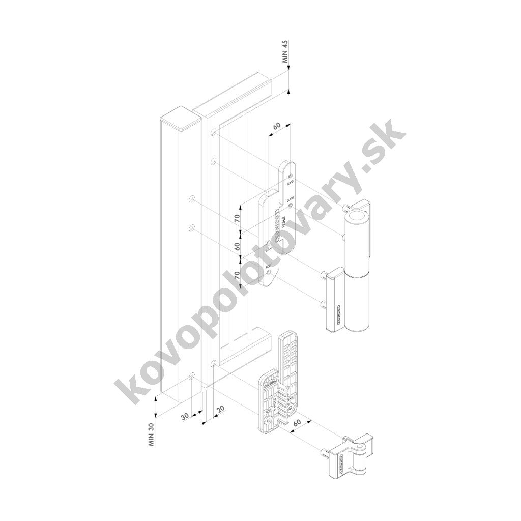 • 1x Kovová šablóna k príprave otvorov pre montáž zatvárače