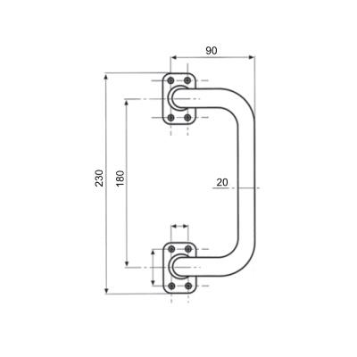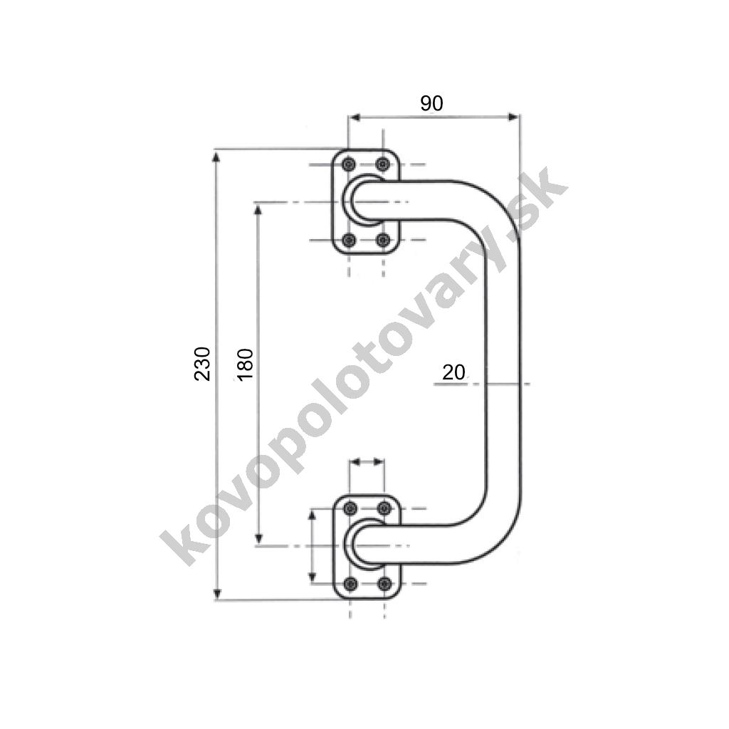 FM-491180 - Zahnuté madlo Určené pre krídlové brány, vráta a dvere. Technické informácie: Rozstup stredov...