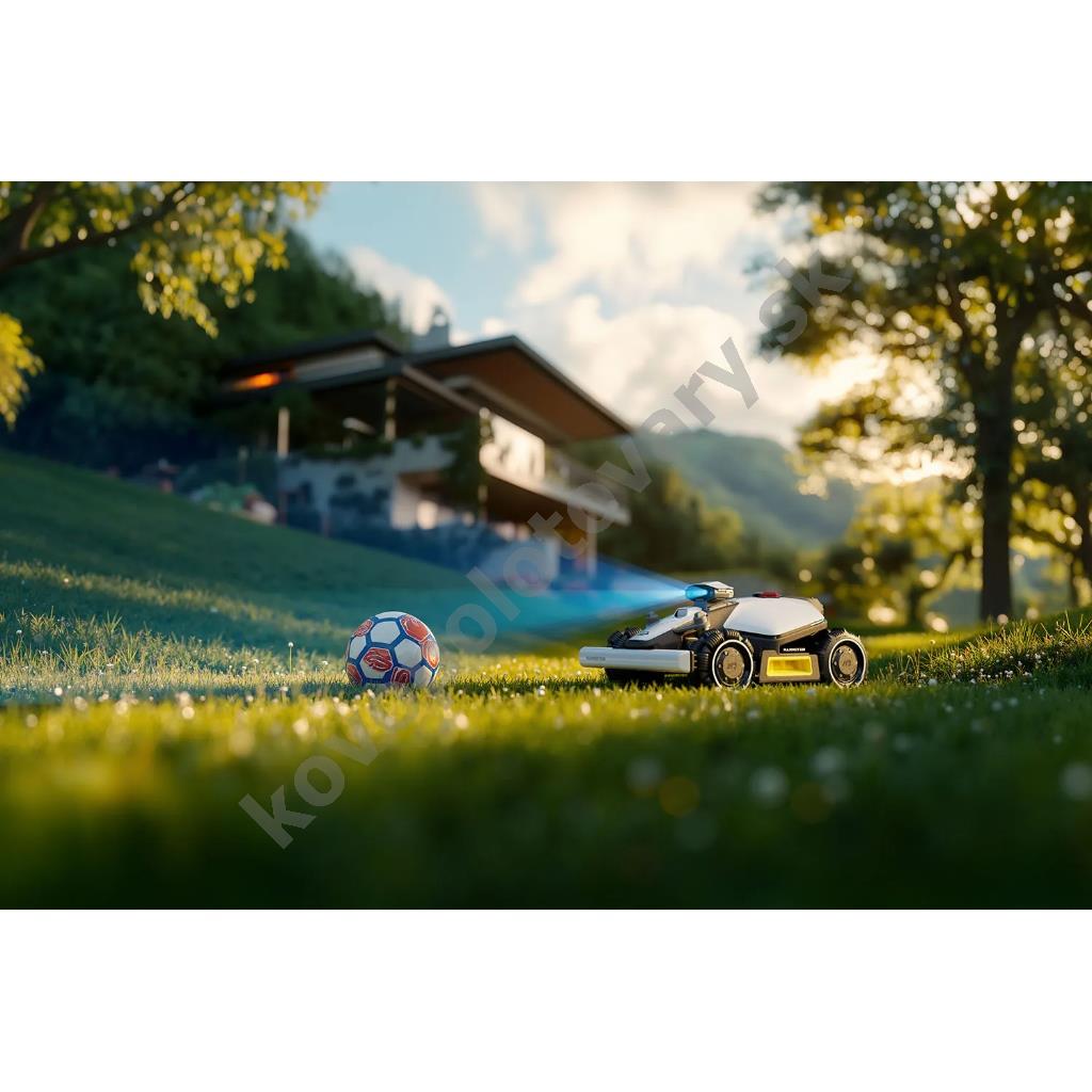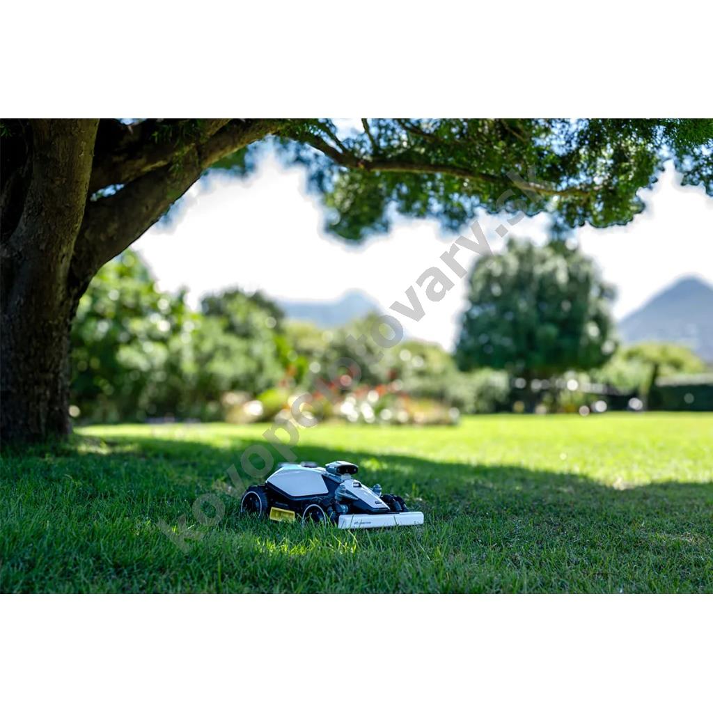 Pokosená tráva je jemne mulčovaná a slúži ako prirodzené hnojivo. Vďaka binokulárnemu kamerovému systému s AI videním sa kosačka spoľahlivo vyhýba prekážkam a funguje aj v miestach, kde je čiastočne zakrytý výhľad na oblohu (napr. pod korunami stromov).