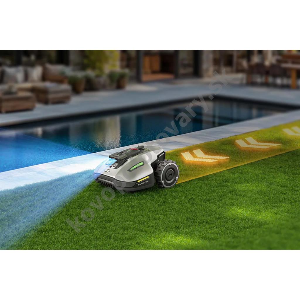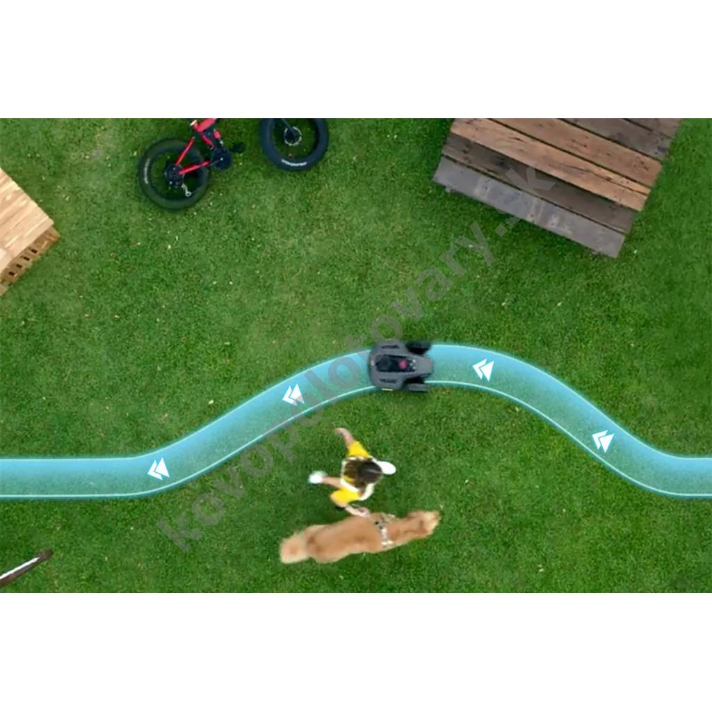 Kosačka nepotrebuje žiadne obvodové drôty. Virtuálne hranice a zakázané zóny nastavíte jednoducho prejdením trasy s kosačkou ovládanou cez telefón. Vďaka kamerovému systému sa inteligentne vyhýba prekážkam, ako sú stromy, nábytok alebo domáci miláčikovia.