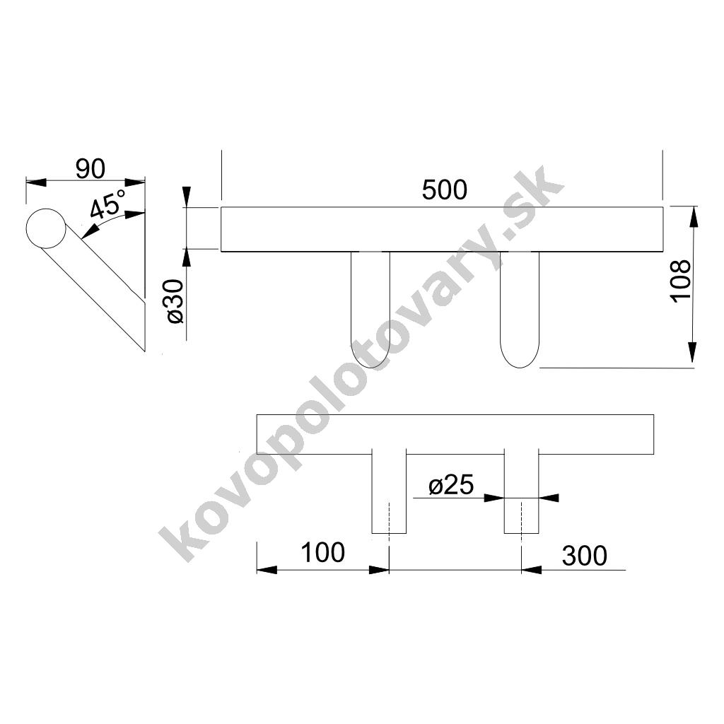 Marchesi 4810 - šikmé nerezové dverné madlo, pr. 30 mm, dĺžka 500 mm Skladom 2 ks 60,32