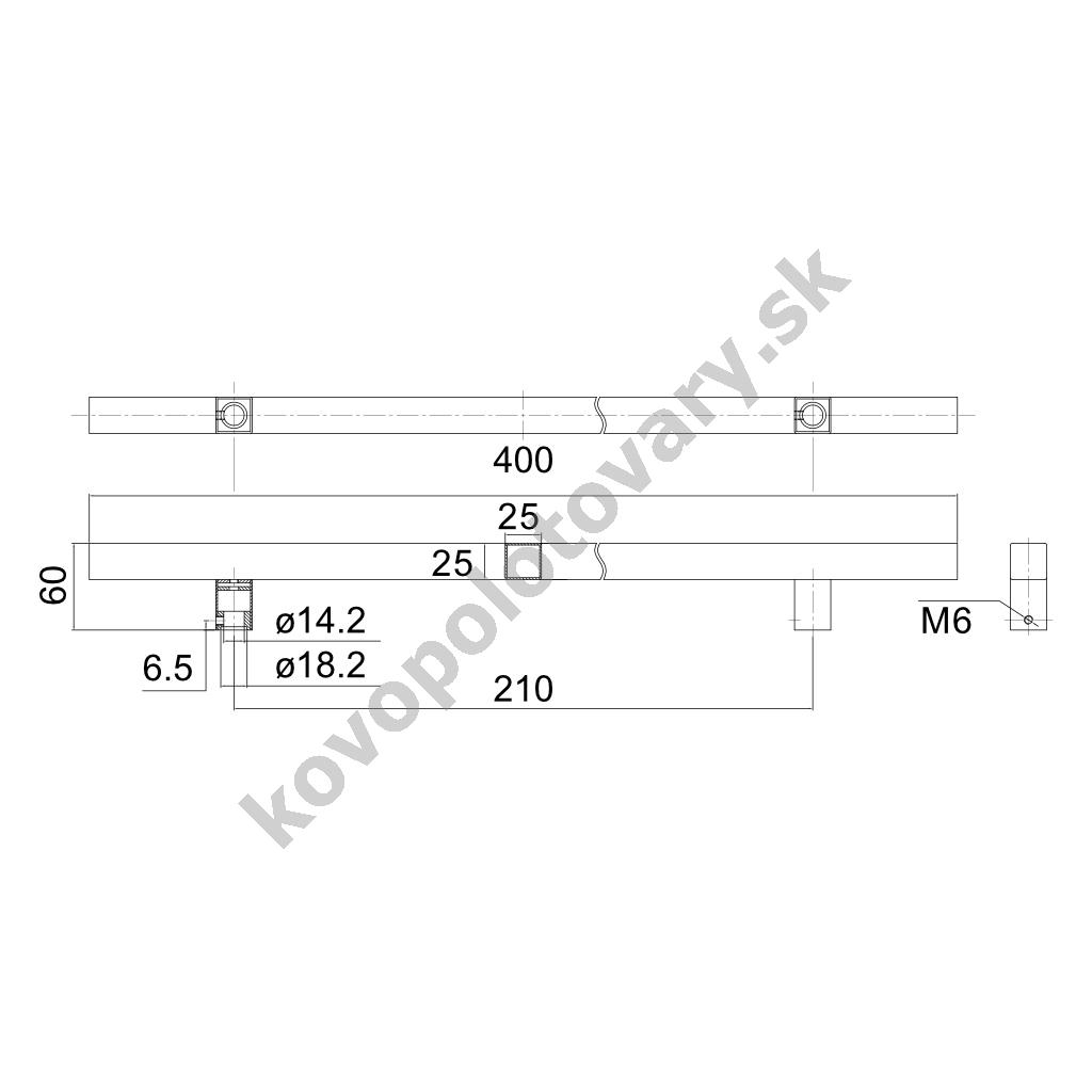 Marchesi 4820 QUADRA - nerezové dverné madlo, 25x25 mm, dĺžka 400 mm