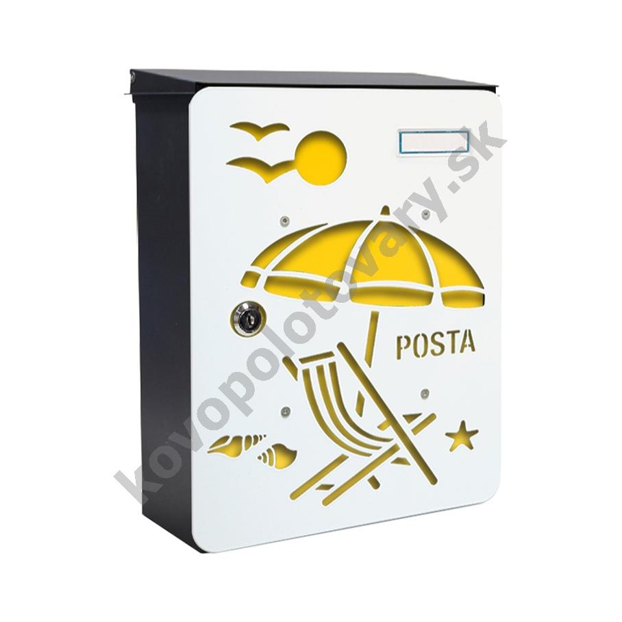 Barva schránky: Šedá; Žlutá; Hloubka schránky: 110; Jmenovka: Ano; Kamera: Ne; Komunikátor: Ne; Materiál: ocel; Montáž: na stěnu; Povrchová úprava: barveno; pozinkováno; Šířka schránky: 260; Venkovní použití: Ano; Vhoz zásilek: shora; Výběr zásilek: vpředu; Výrobce: Alubox; Výška schránky: 320; Zvonkové tlačítko: Ne;