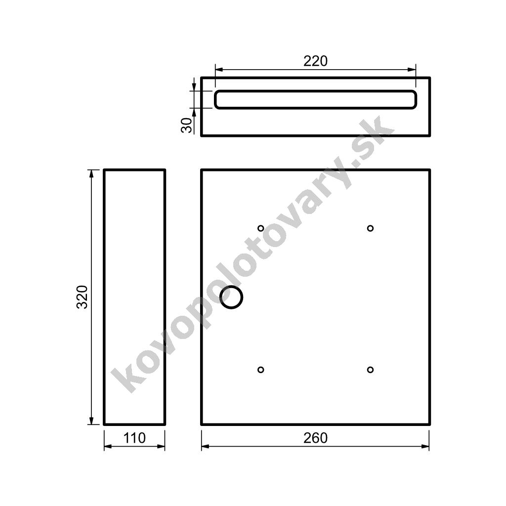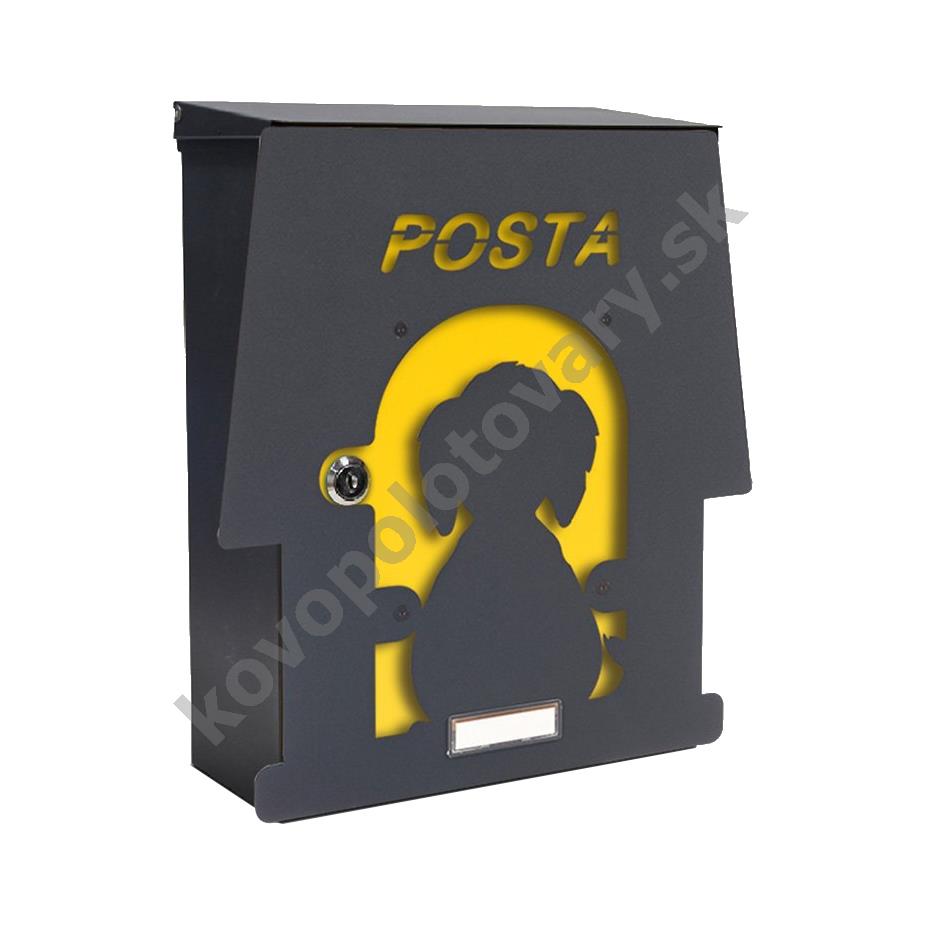 Barva schránky: Šedá; Žlutá; Hloubka schránky: 110; Jmenovka: Ano; Kamera: Ne; Komunikátor: Ne; Materiál: ocel; Montáž: na stěnu; Povrchová úprava: barveno; pozinkováno; Šířka schránky: 260; Venkovní použití: Ano; Vhoz zásilek: shora; Výběr zásilek: vpředu; Výrobce: Alubox; Výška schránky: 320; Zvonkové tlačítko: Ne;
