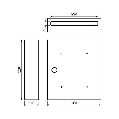 Barva schránky: Šedá; Žlutá; Hloubka schránky: 110; Jmenovka: Ano; Kamera: Ne; Komunikátor: Ne; Materiál: ocel; Montáž: na stěnu; Povrchová úprava: barveno; pozinkováno; Šířka schránky: 260; Venkovní použití: Ano; Vhoz zásilek: shora; Výběr zásilek: vpředu; Výrobce: Alubox; Výška schránky: 320; Zvonkové tlačítko: Ne;