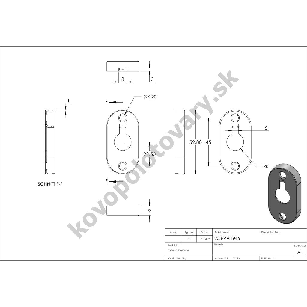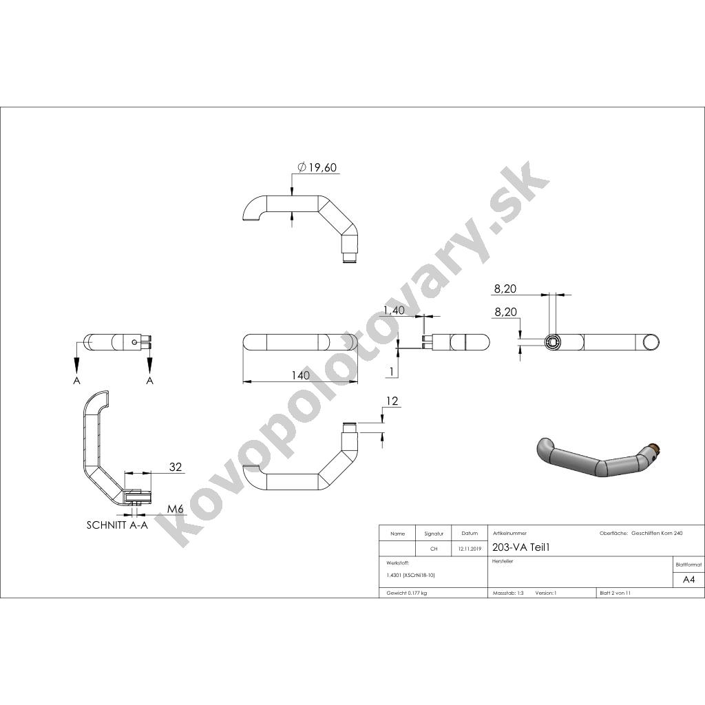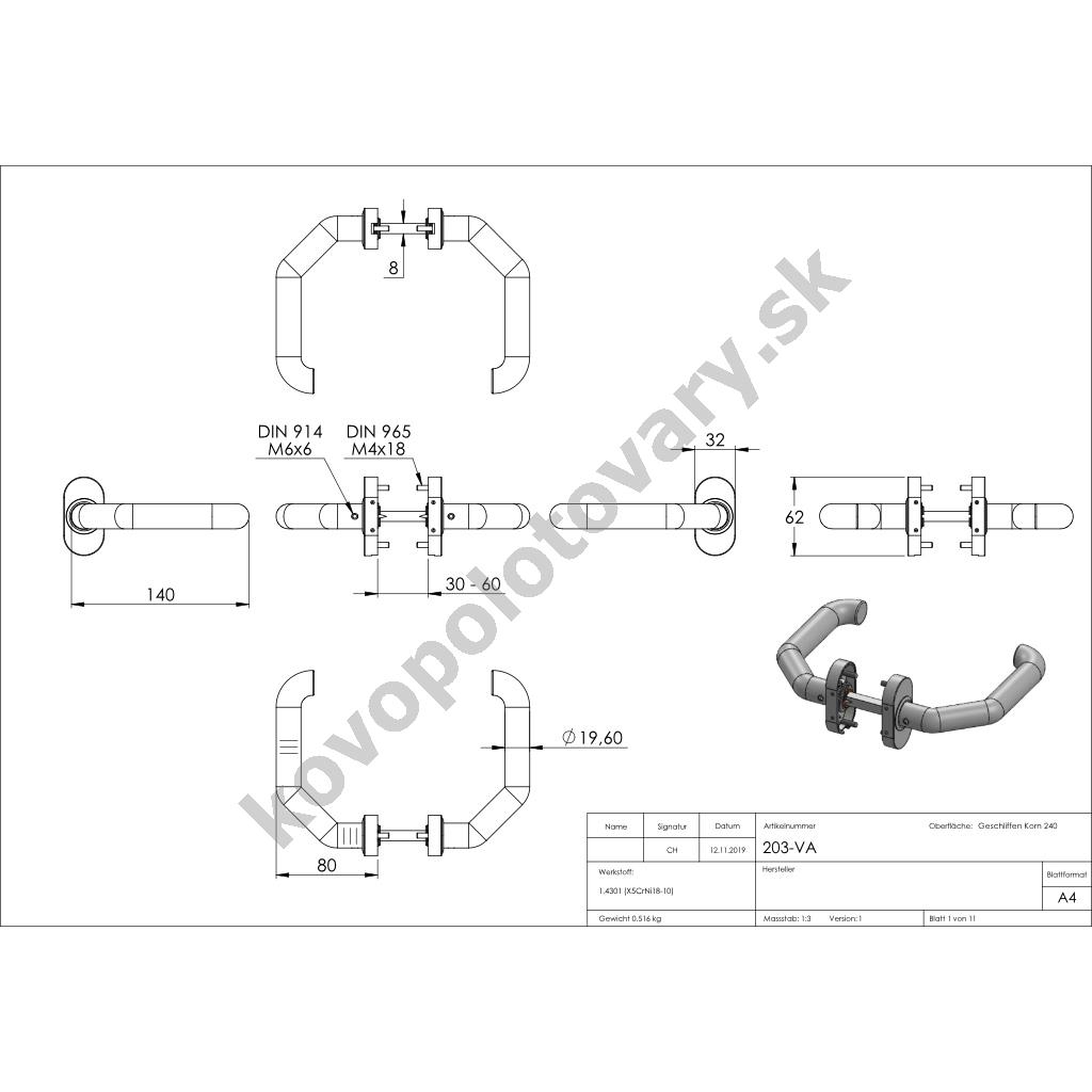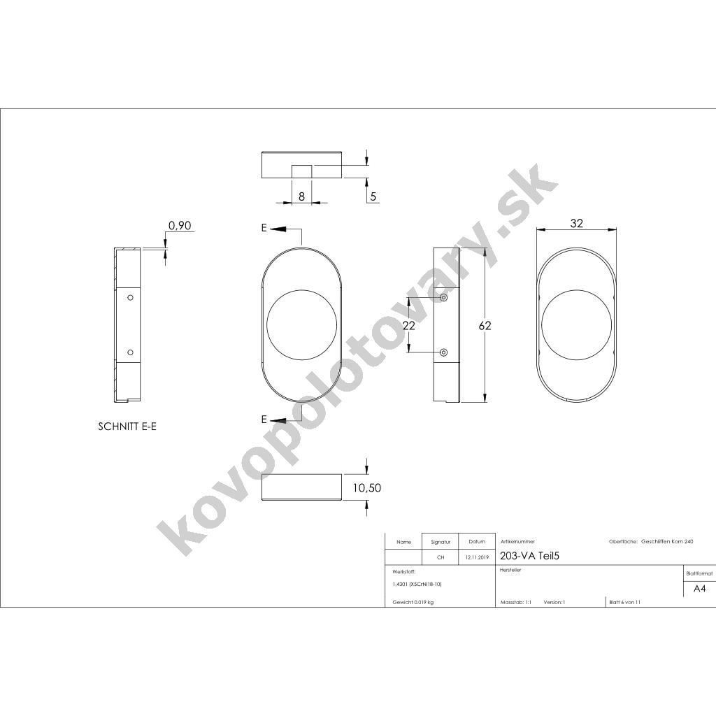 Materiál: ocel nerezová; Povrchová úprava: mat / brus K240; Třída oceli: AISI 304 (A2); Výrobce: Feldmann;