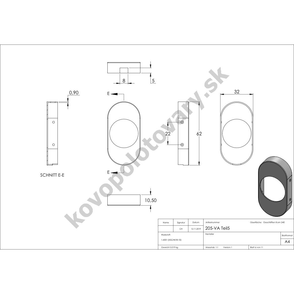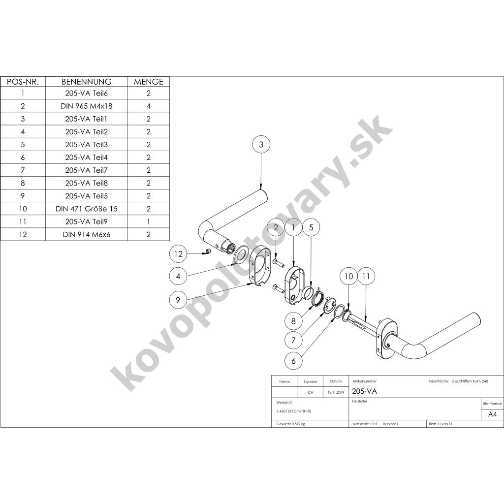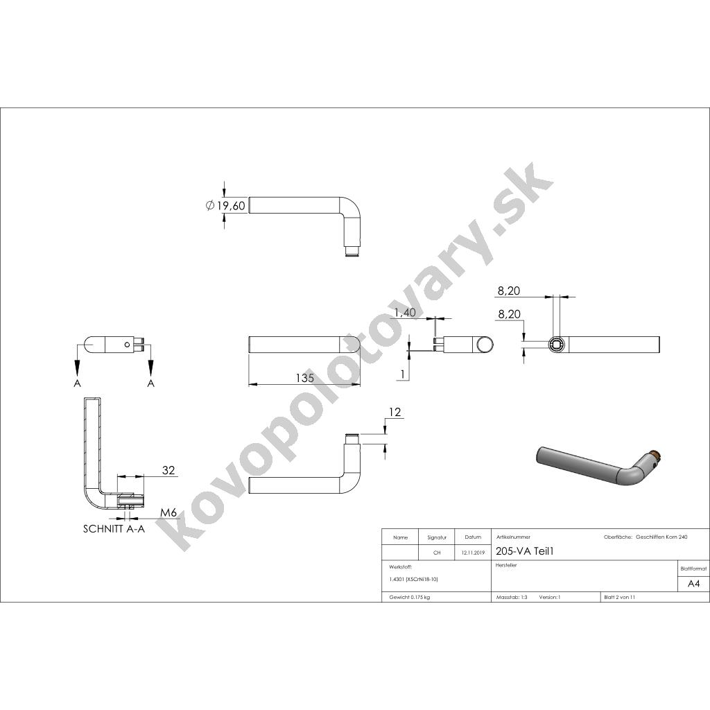 Materiál: ocel nerezová; Povrchová úprava: mat / brus K240; Třída oceli: AISI 304 (A2); Výrobce: Feldmann;