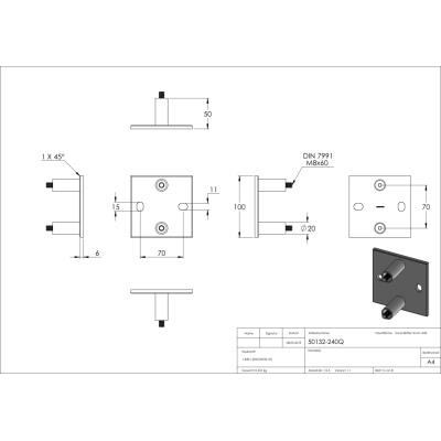 Nerezová kotvící příruba zábradlí 50132-240Q pro pr.42,4 mm, boční kotvení, 100x100 x 6 mm