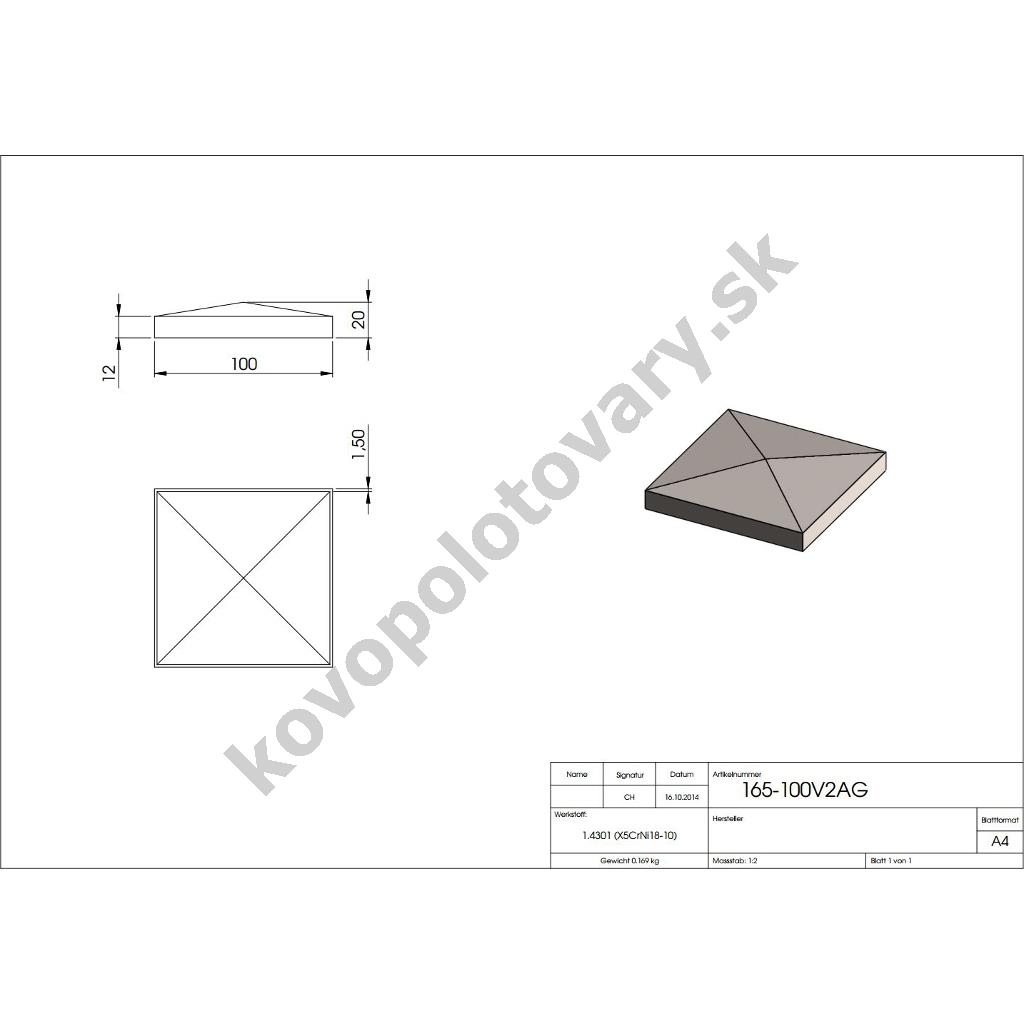 Materiál: ocel; Povrchová úprava: bez úpravy; Rozměr základny: 100 x 100;