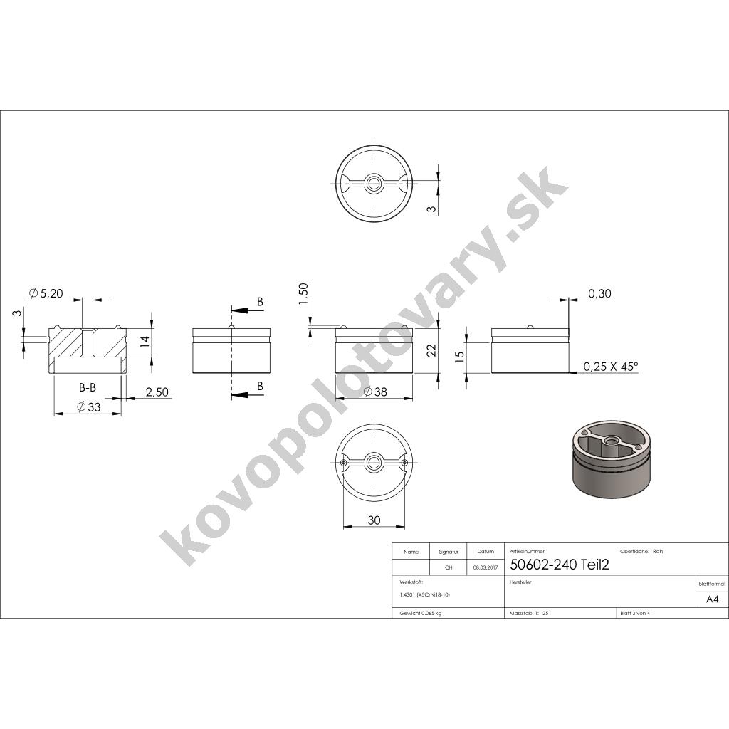 | Trieda ocele | AISI 304 (A2) |